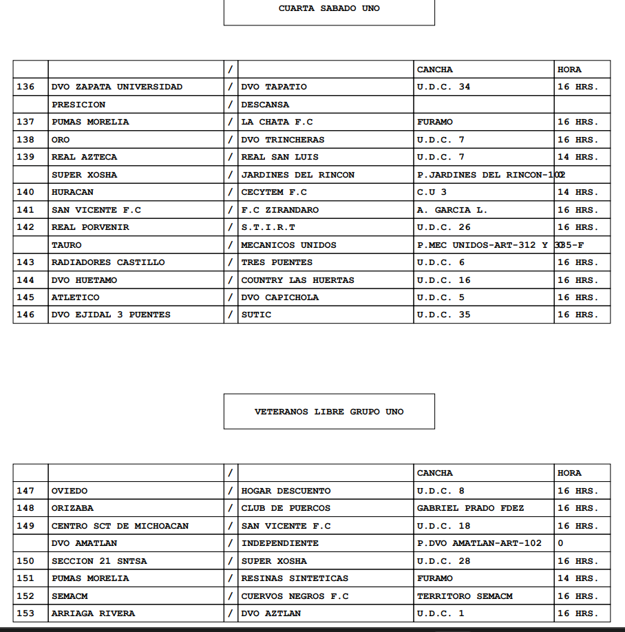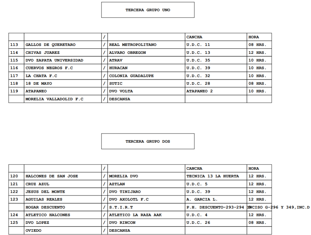 Consulta los encuentros que se jugarán en la fecha 16 de la Liga Municipal de Morelia, con toda la programación para las ramas grandes.